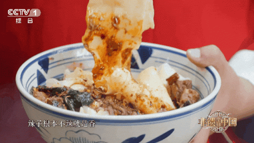 陕西八大怪,“板凳不坐蹲起来,面条宽得像裤带”。宽大的面入锅,煮熟捞起来浇上一勺滚烫的热油,只听“滋啦”一声,撞出一碗“红光满面”,好不喜庆!